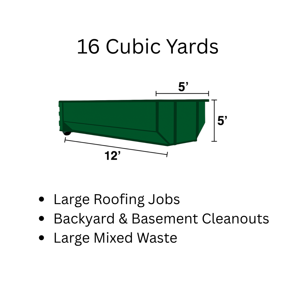 We offer four convenient bin sizes — 6, 12, 16, and 20 yards — for every project type. Whether it’s a home cleanup, roofing, or construction, we’ve got the right bin for you.