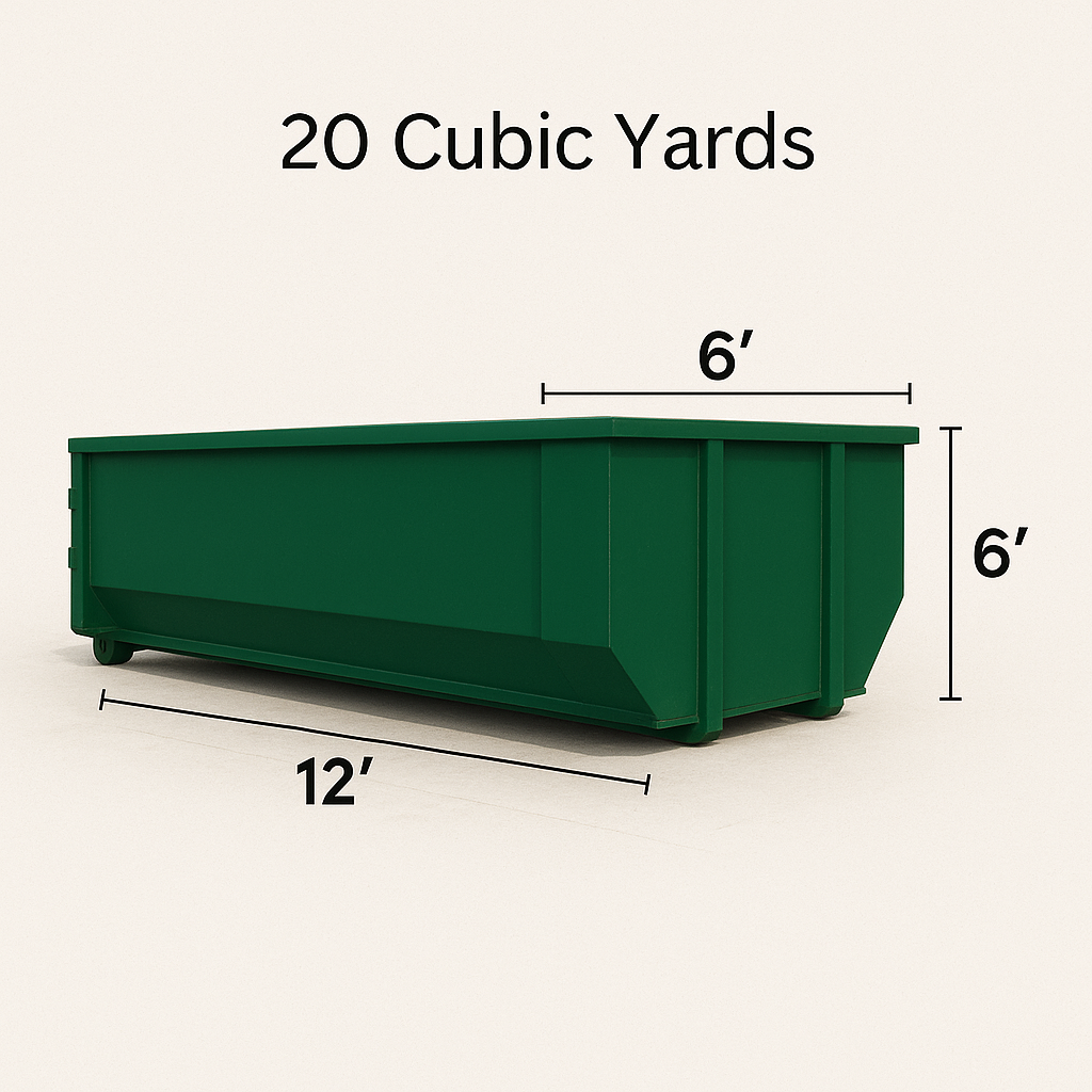 Our bins are available in four convenient sizes: Small (6 cubic yards), Medium (12 cubic yards), Large (16 cubic yards), and Extra-Large (20 cubic yards). Each size is suited for specific needs — from small household cleanups to large-scale demolition work. Whether it’s roofing materials, junk removal, or mixed construction waste, we’ve got the right size for your load.